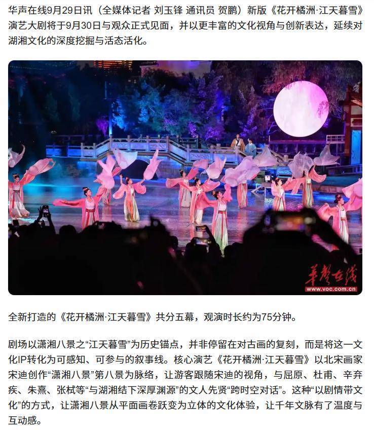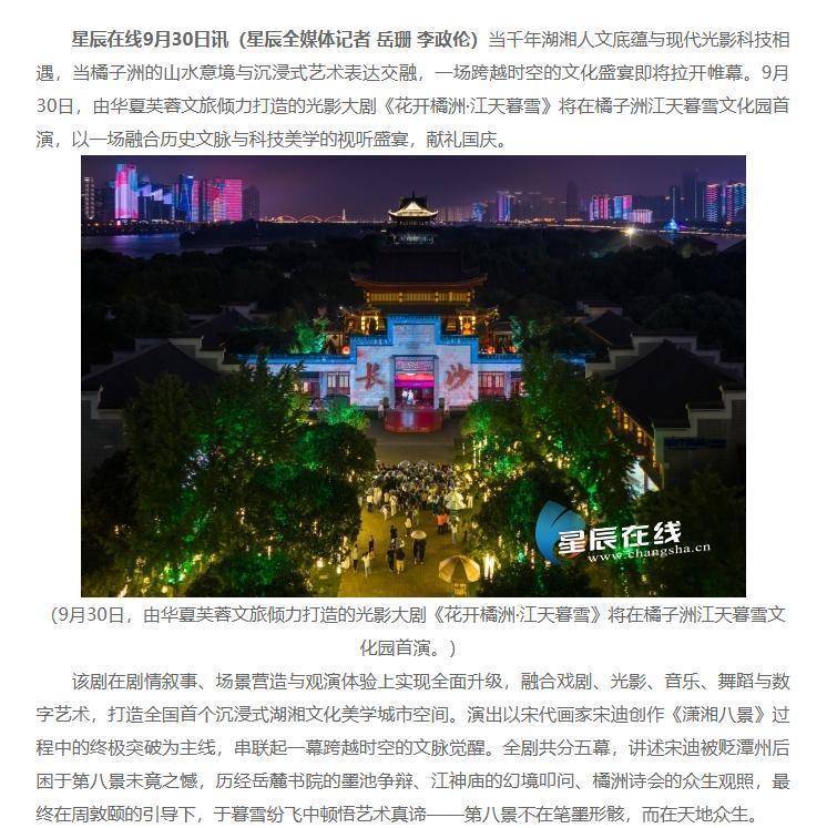 演出凭借“科技活化文脉”“文旅融合新表达”等特色,江天暮雪引得众多媒体争相报道,聚焦其将湖湘风骨与光影艺术结合的创新,以及“日游夜赏”模式对长沙文旅的助力,成为假期文旅热点话题。
