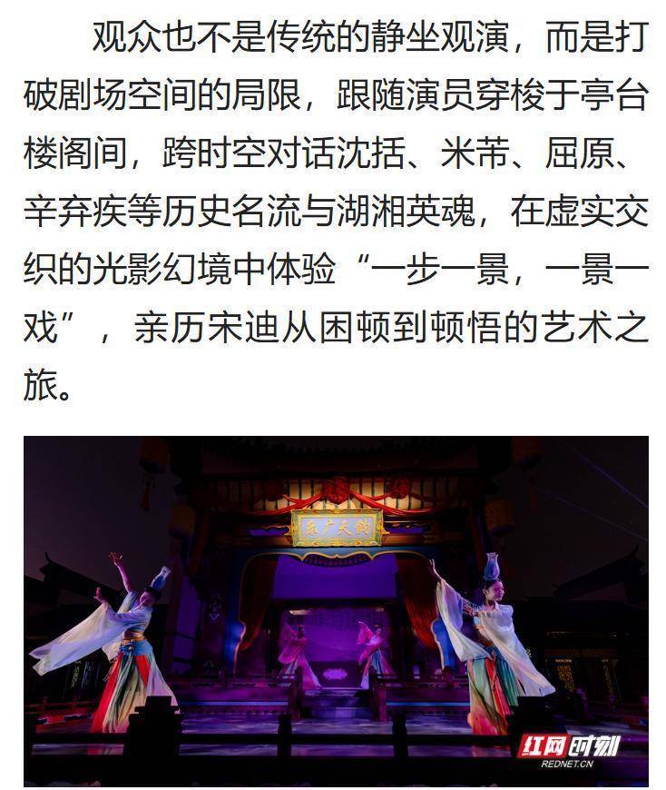 演出以北宋画家宋迪“寻找第八景”为主线,串联屈原、辛弃疾、杜甫、周敦颐等文人先贤故事,传递“心忧天下、敢为人先”的湖湘精神。依托多重技术创新,打破传统剧场边界,观众随演员穿梭亭台,移动观演中身临其境,成为湖湘文化活化利用的典范。