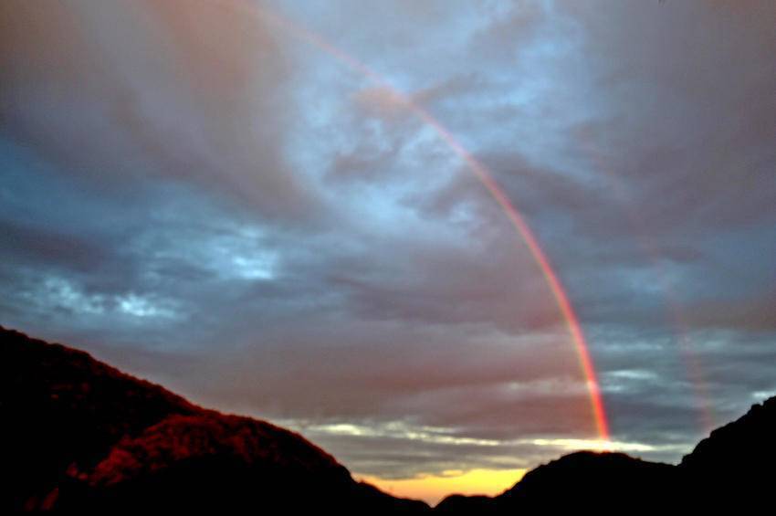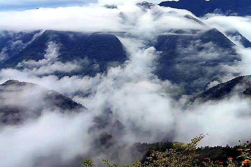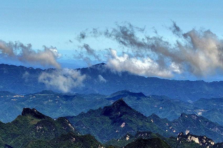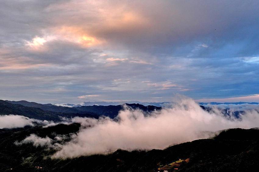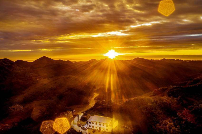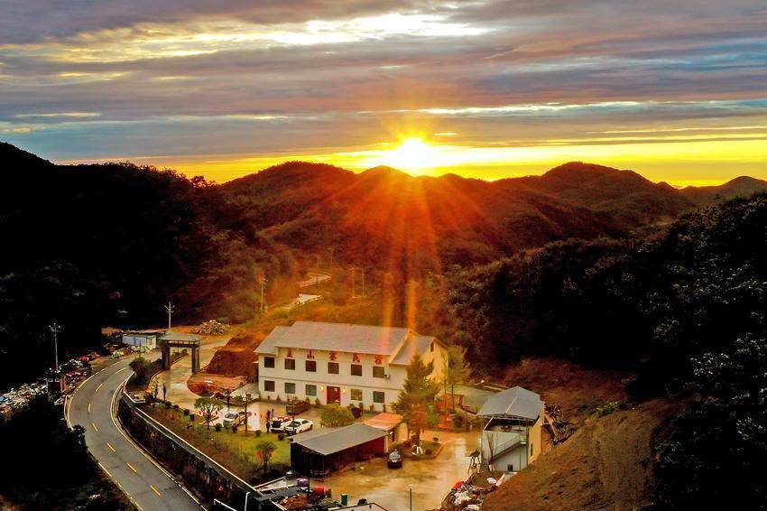 站在海拔1260米的主山寨民宿处放眼望去,群山巍峨,层岚叠嶂。当霞光放射出金灿灿的光芒时,云飞雾绕,变幻莫测,雨中的一道彩虹像一座金桥连接天地,蔚为壮观,吸引着众多游客在此观景打卡。